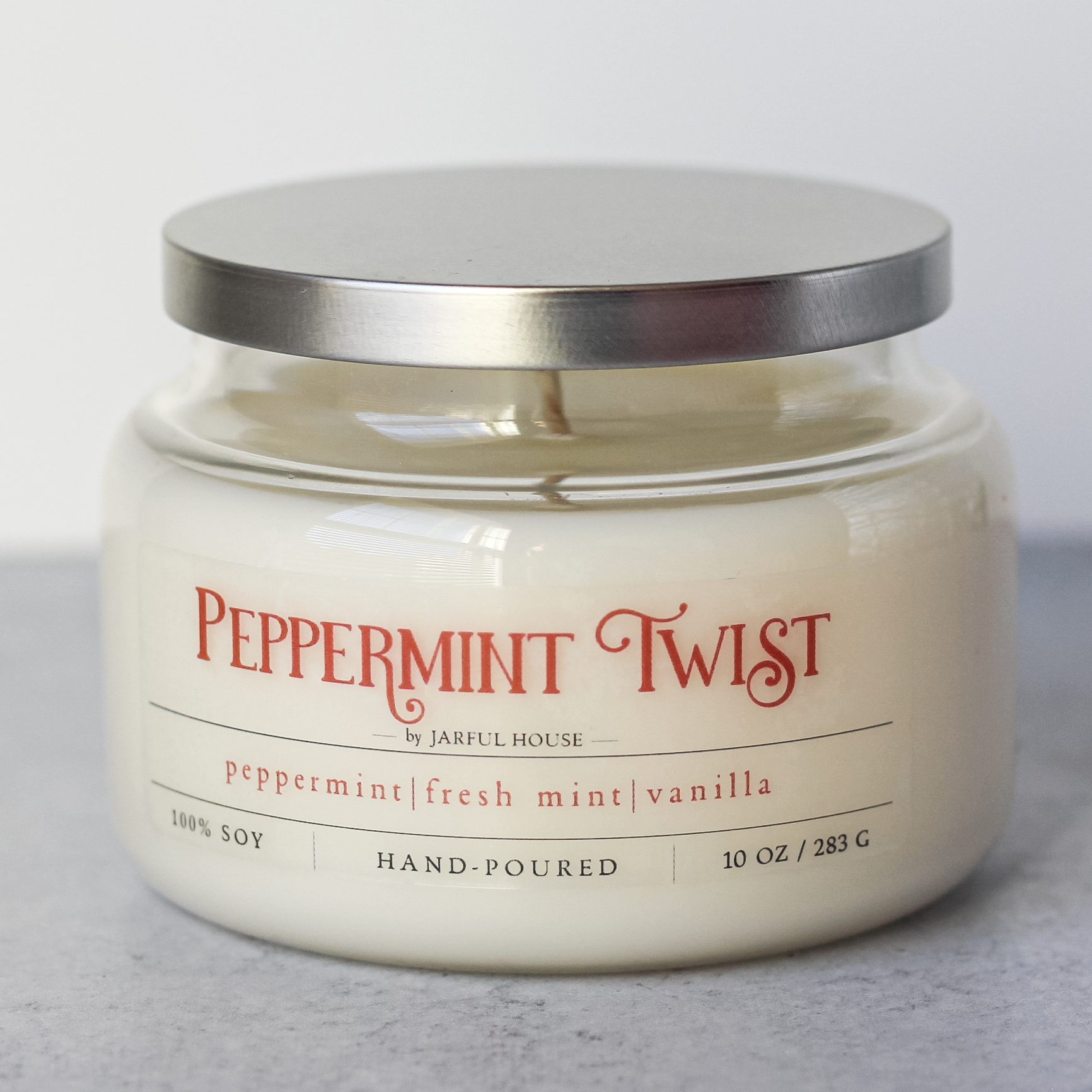Bright, crisp, and perfectly refreshing, our Peppermint Candle brings an instant burst of clean energy to your space. Hand-poured with 100% natural soy wax, this 10 oz candle captures the pure scent of cool peppermint and creamy vanilla, balanced with a soft hint of sweetness for a smooth finish.